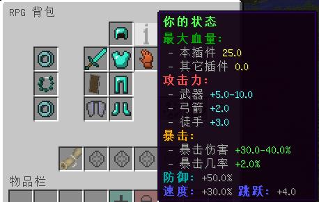 加成效果是插件自带的,都可以配置,只要把带lore的装备放进物品槽就能生效,但是他自带的属性太少了 ...