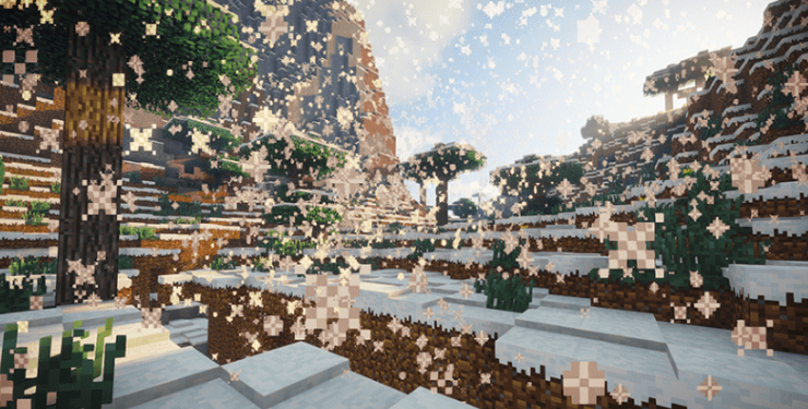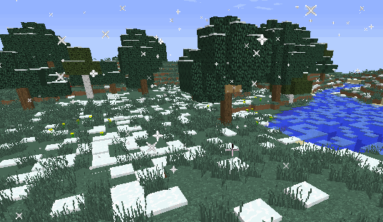 本插件可以让玩家周围生成更加真实的下雪粒子效果,并会在玩家周围数个区块内的露天地面生成积雪,当一块一层高的积雪周围有至少两块同样一层高的积雪时,该积雪可能会生成2层高,使得地面上生成层次分明的积雪,下雪和积雪都是不分生物群系的!